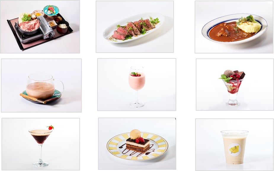 「常陸牛すきやき」プレミアムご膳、「和牛ローストビーフ トリュフマッシュポテト添え」、「和牛ビーフシチュー」(上段)