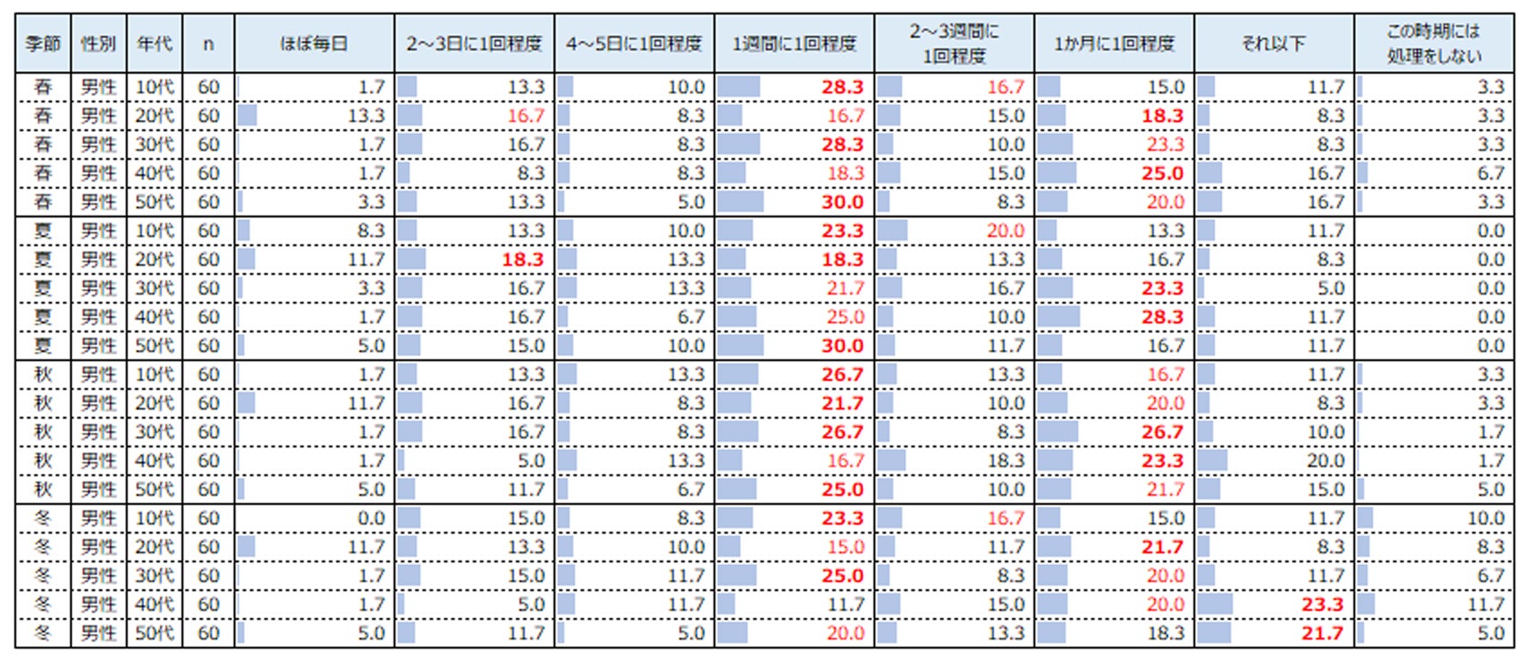 ~秋冬のケア頻度は男女共に週1回くらい 部活・サウナ・ジム等のため継続も~