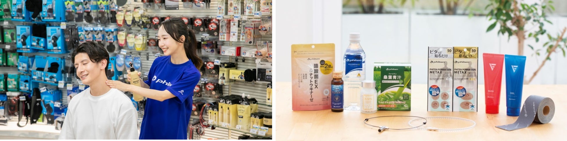 肩・腰・膝など悩みがあるお客様に、新発売のメタックスローションやクリームをはじめ、人気のテープにて無料ケアを実施しております。ファイテンショップでは、テープやローションをはじめ、ネックレス、サプリメント、アパレル、サポーター等幅広い商品を取り扱っておりますので、悩みに合わせた商品やケア方法の提案もさせていただきます。お気軽にご来店ください!
