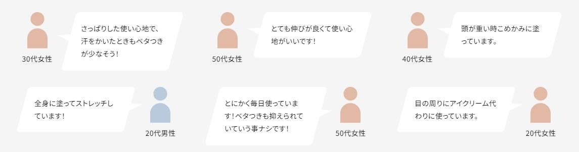 事前に商品をご使用いただいたお客様からは、伸びの良さ、肌なじみの良さ、使い心地などに対して高評価を頂いております。