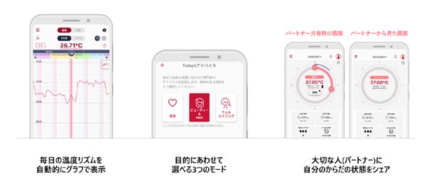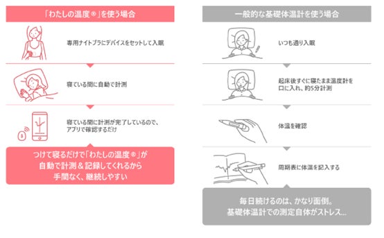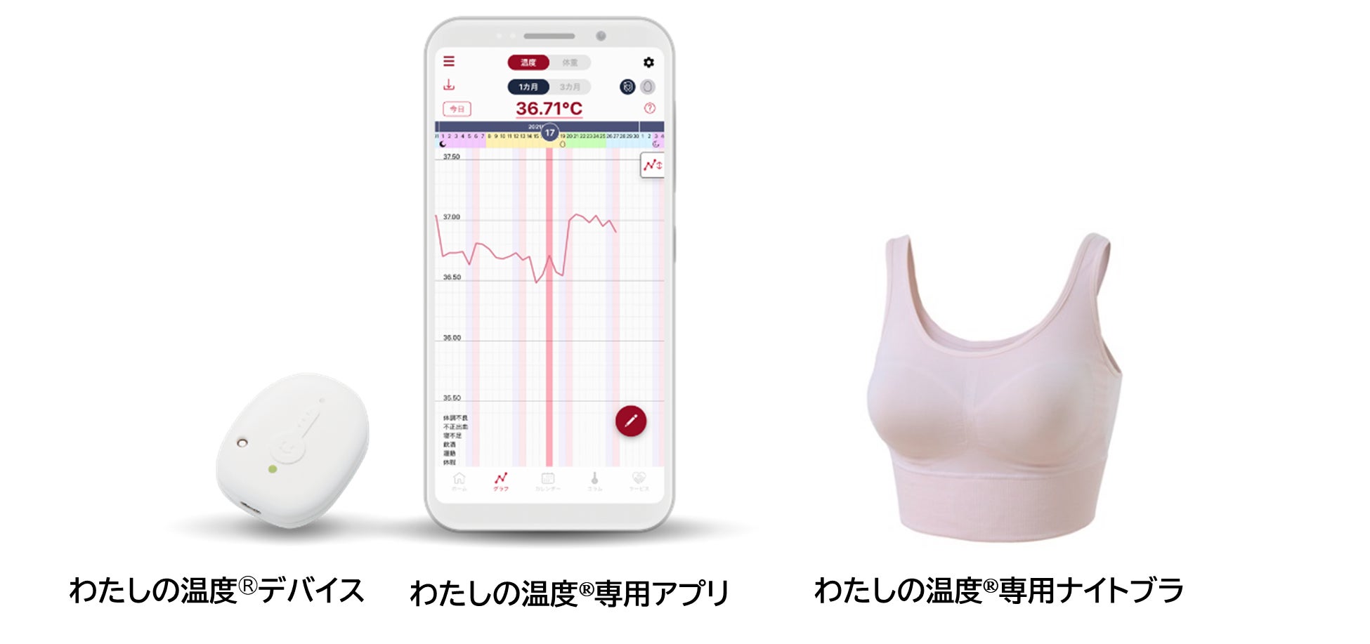 *「わたしの温度®」はデバイス、アプリおよび専用ナイトブラを含めたサービスの総称です。
