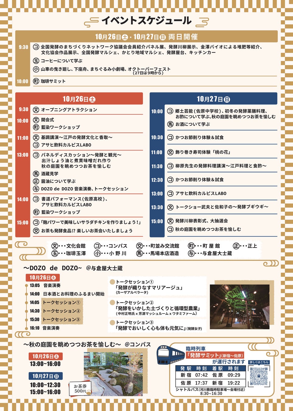 サミット当日は、東京農業大学名誉教授 小泉 武夫氏と作家・エッセイスト 阿川 佐和子氏によるトークショーを始め、全国から様々な発酵食品が集まるマルシェや、その場で食べられる発酵屋台など、様々な企画で皆さまをお迎えします。