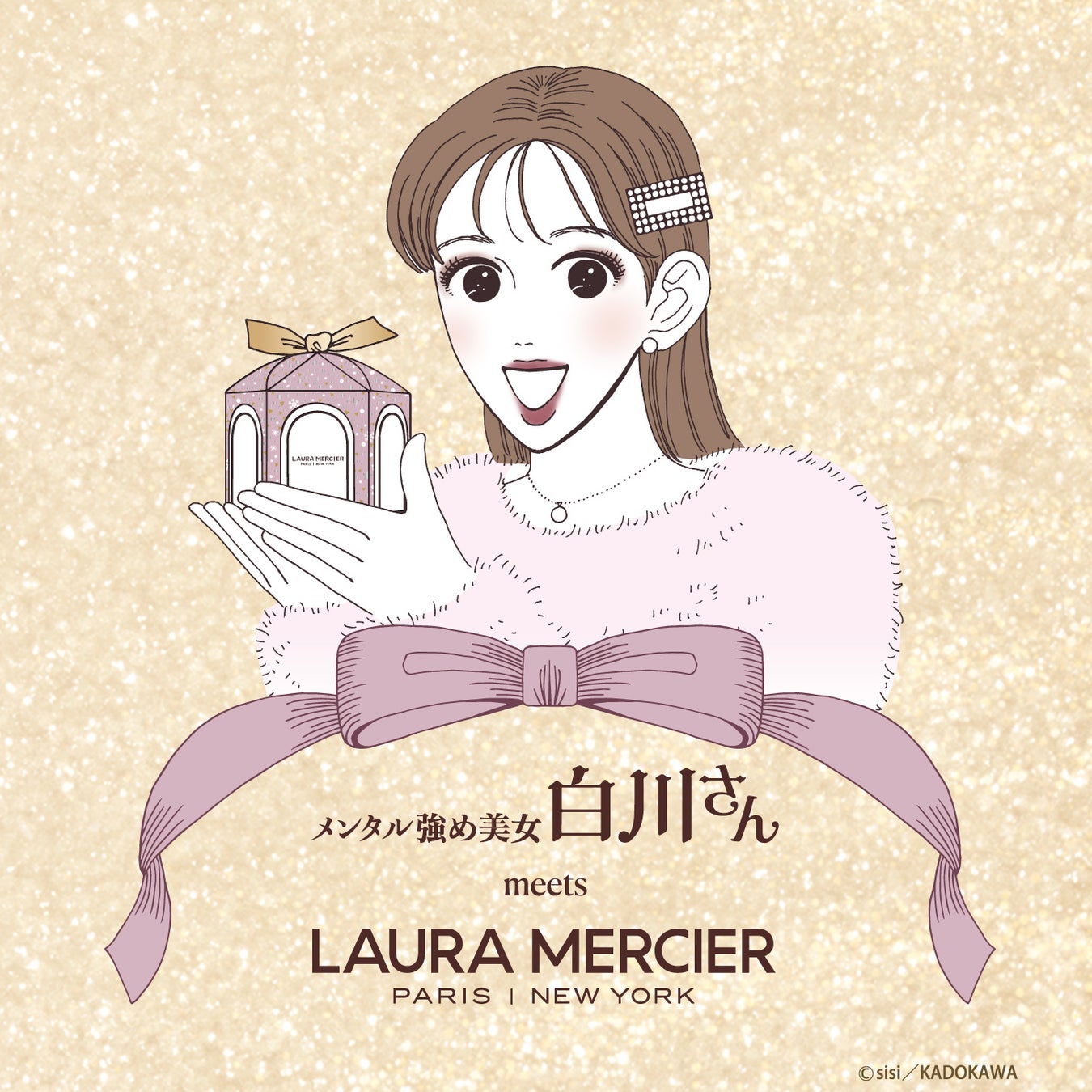 <ローラ メルシエ>と、自分らしさを大切に、自分を肯定し、自分も周りも勇気づける「メンタル強め美女白川さん」。コラボレーション最後を締めくくる、素敵なコラボレーションイラストが完成しました。ローラ メルシエ ウィンターコレクション2024の象徴的デザインアイテムを手に多好感あふれる白川さんと一緒に、この冬だけの”はじめまして”なときめき体験を楽しんで。