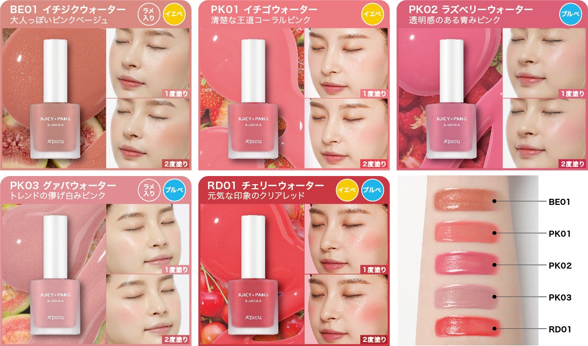 ジューシーなもぎたて果実をイメージさせるA’pieuジューシーパンシリーズから、リキッドチークとジェリーティントが同時発売。A’pieuミューズのTWICE DAHYUNがジューシーなツヤやかさ、やさしく美しい発色を魅力的に表現してくれました。