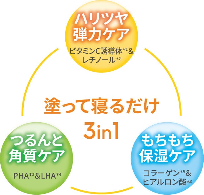• 弾力・角質・保湿ケア機能の3in1アイテムで翌朝が楽しみな肌へ。