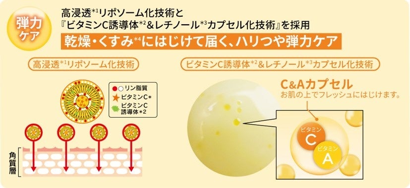 高浸透*¹ リポソーム化技術と『ビタミンC誘導体*² &レチノール*³ カプセル化技術』を採用しました。