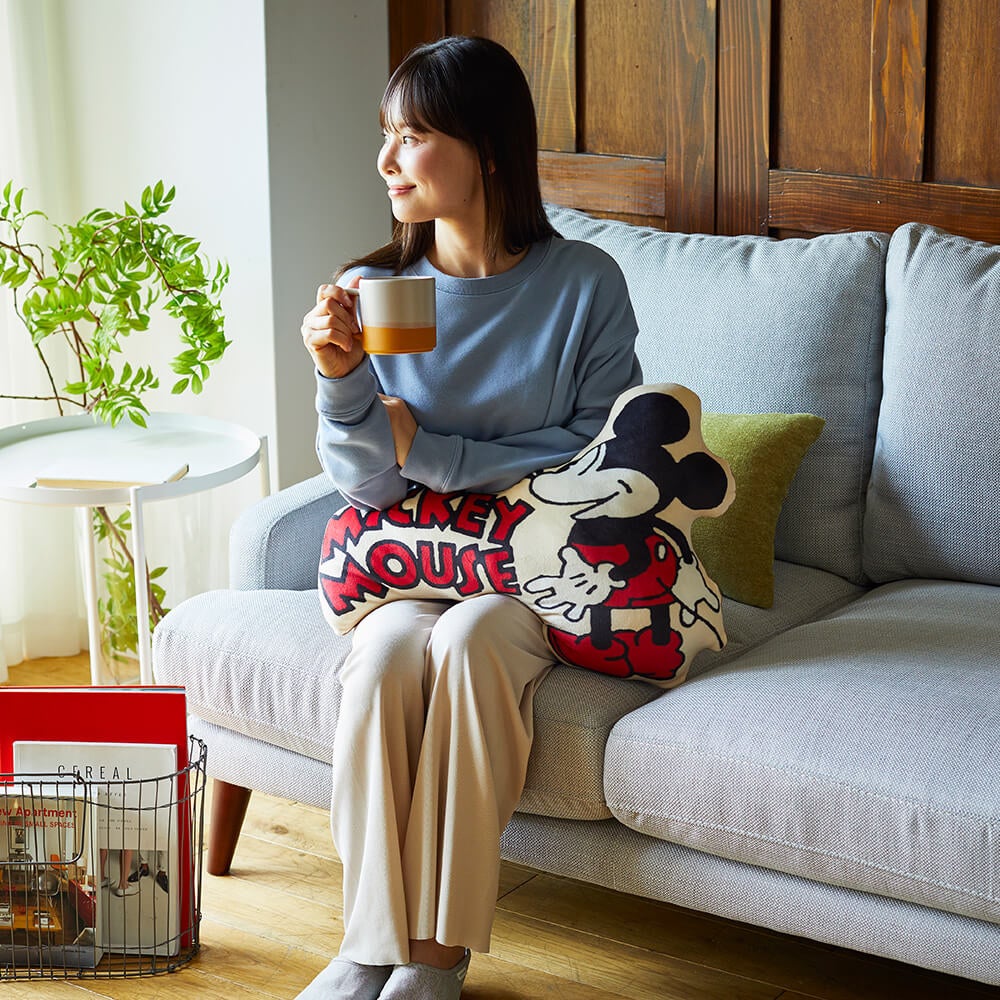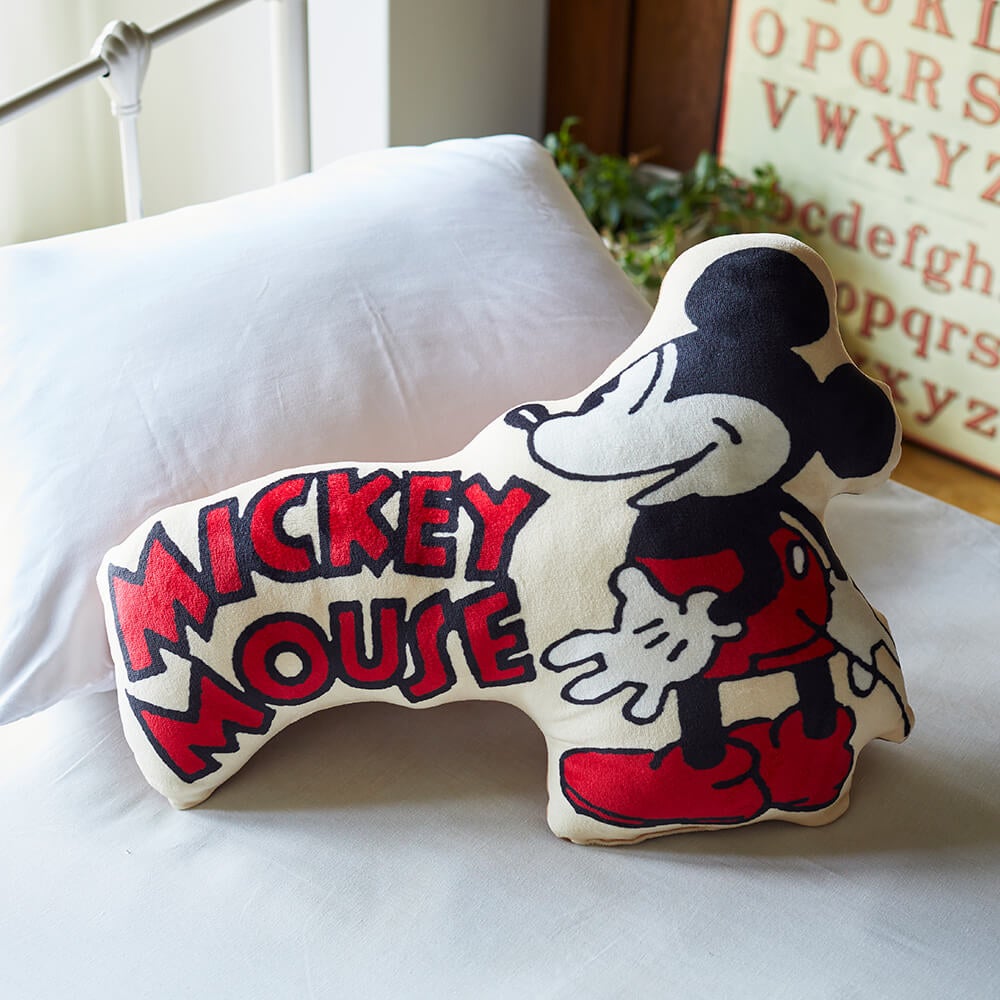 レトロなミッキーを型取ったお昼寝まくら。お昼寝にももちろん、クッション使いにも。
