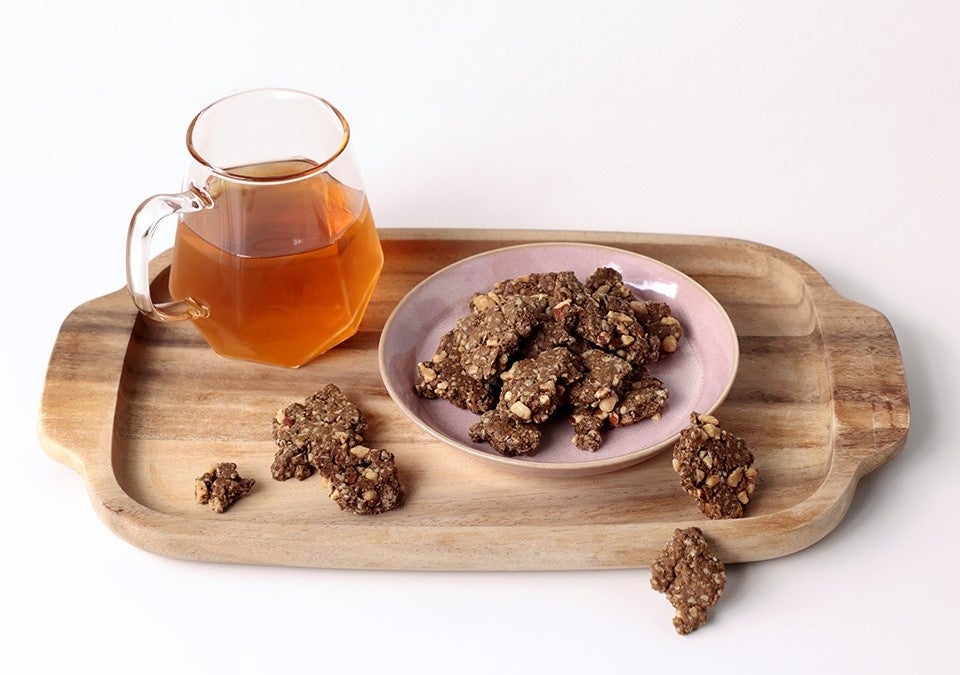オートミールをたっぷり使用したMinotteの「オーツクッキー」をベースに、お茶のように楽しめるプロテインとしてDAYLILYで大人気の「TAIWAN TEA PROTEIN 鉄観音茶」を混ぜ込み焼き上げました。丁寧に発酵・焙煎を重ねた高級台湾茶「鉄観音茶」(てっかんのんちゃ)の香り豊かな風味とオートミールやナッツのザクザクとした食感を一度にお楽しみいただけます。