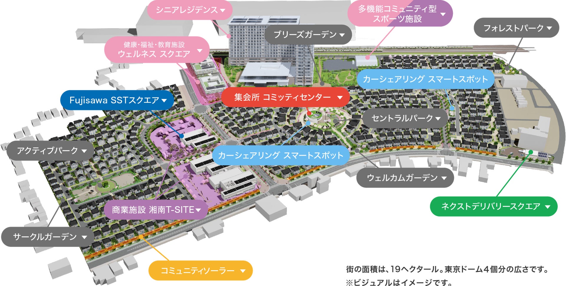 Fujisawaサスティナブル・スマートタウン (以下、「Fujisawa SST」)は、パナソニックの神奈川県藤沢工場跡地にパナソニックと協力企業が構築した全国的にも先駆的なスマートタウンであり、Fujisawa SSTコンソーシアム(31団体・代表会員はパナソニックグループ)がまちづくりを推進しています。