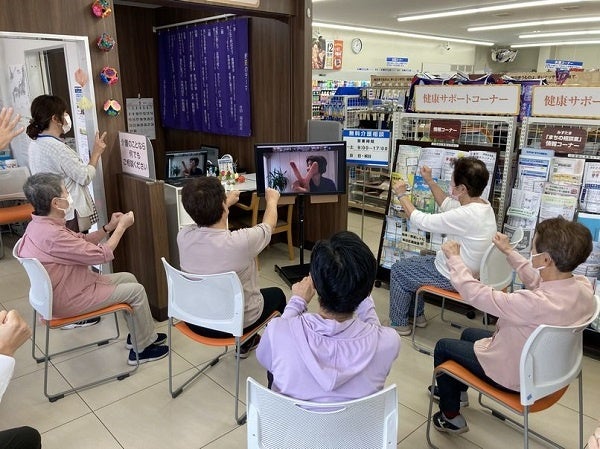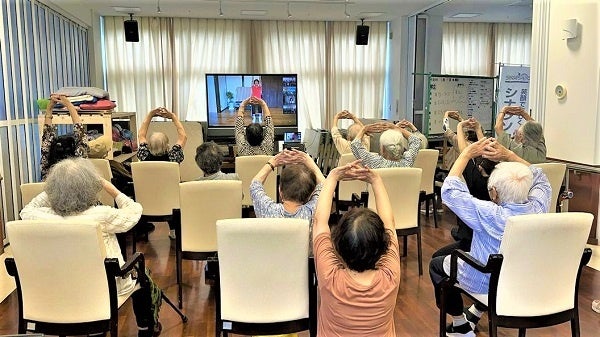 この健康教室は軽い運動だけでなく、当社が開発した脳活性化メソッド「シナプソロジー®」を交えたオリジナルのプログラムです。青森から鹿児島まで、全国各地をオンラインでつなぎライブ開催しました。