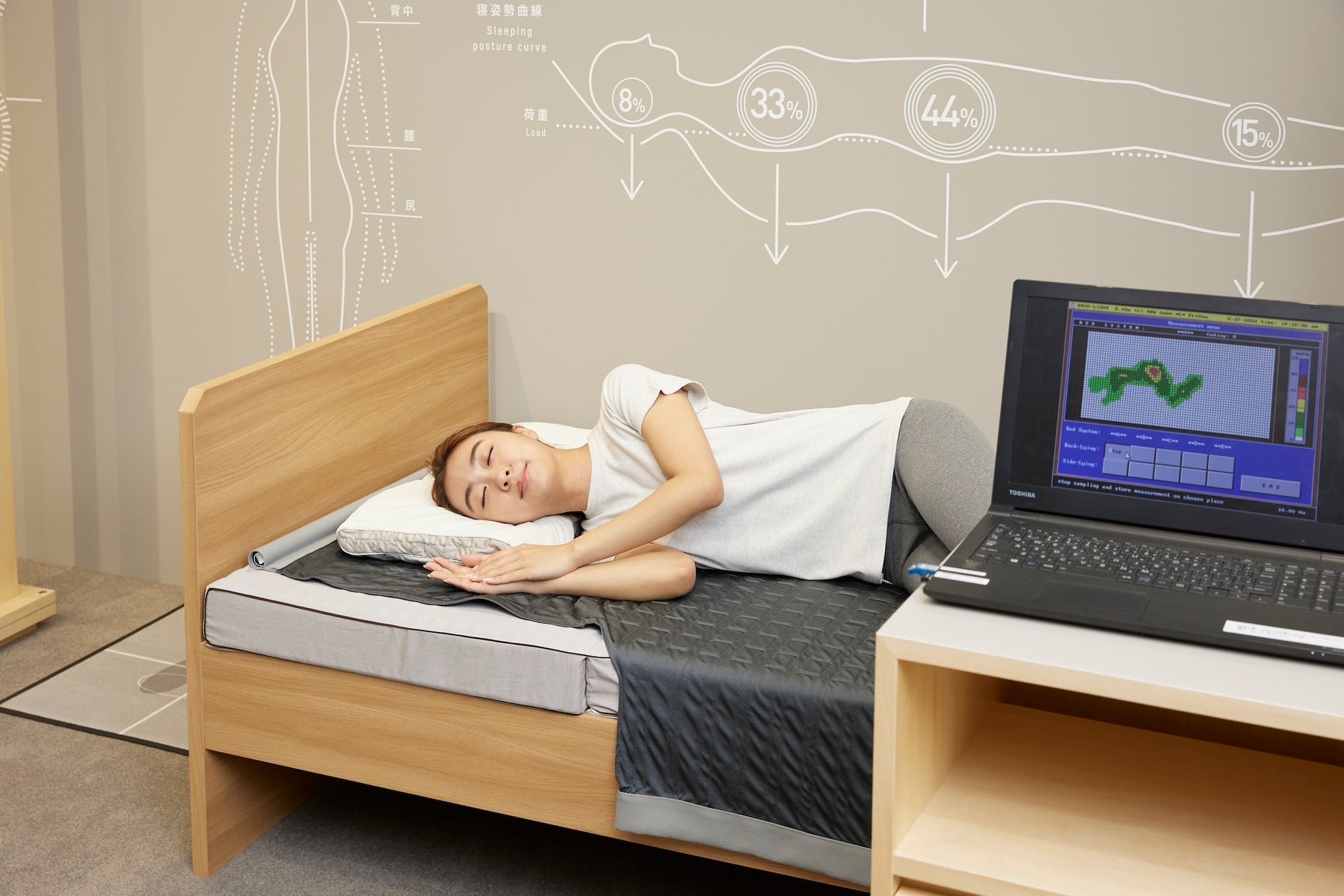 非接触でお客様の全身を測定し、一人ひとりに合ったマットレスとオーダーまくらをトータルで提案。