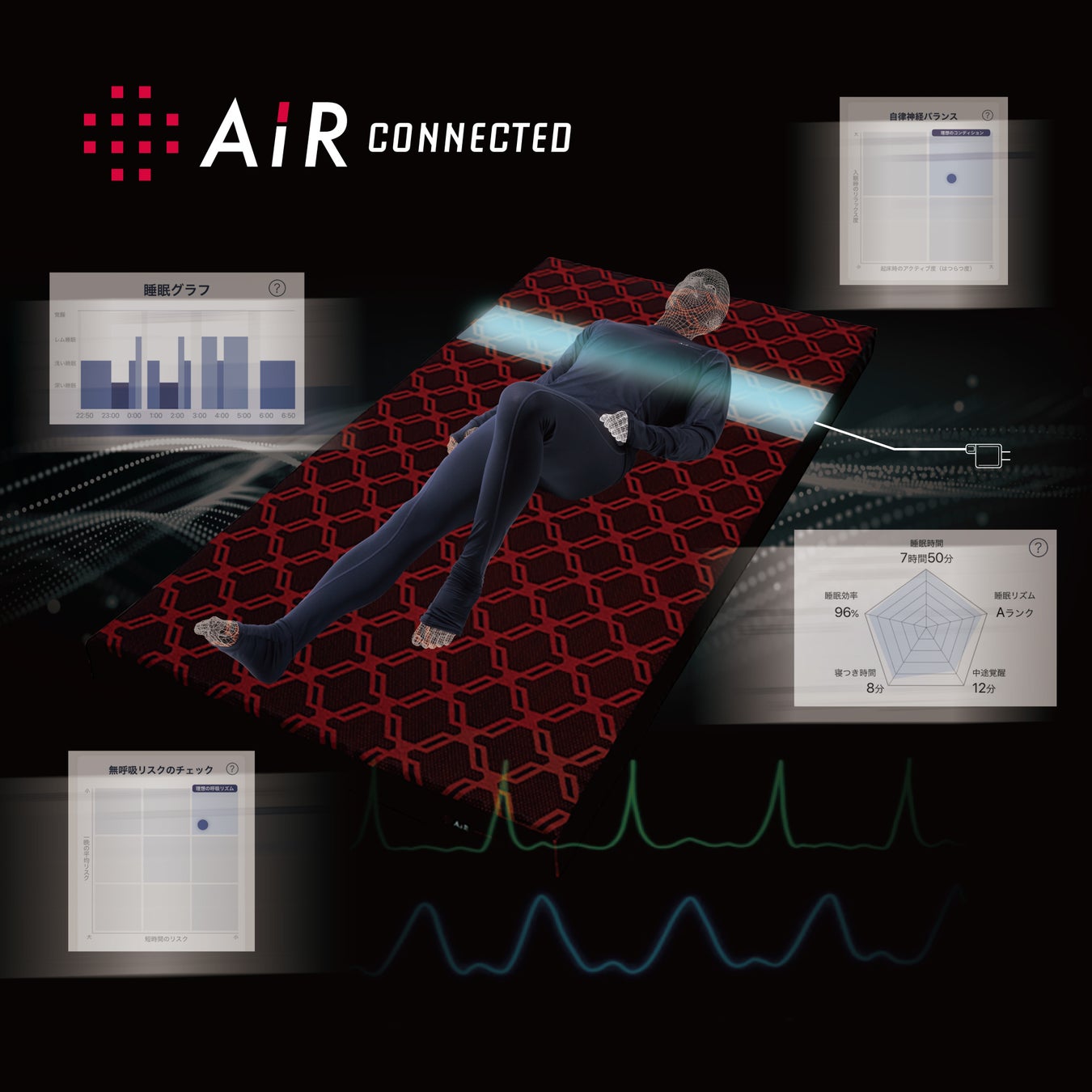 nishikawaの睡眠アプリ「goomo」と連携した高精度センシングマットレスを先行販売。トップアスリートも多く愛用する「[エアーSX]マットレス」の寝心地をそのままに、高精度のバイタルデータ測定が可能。自律神経バランスや無呼吸リスクの程度を可視化し、睡眠をとりまく日常の生活をサポートします。