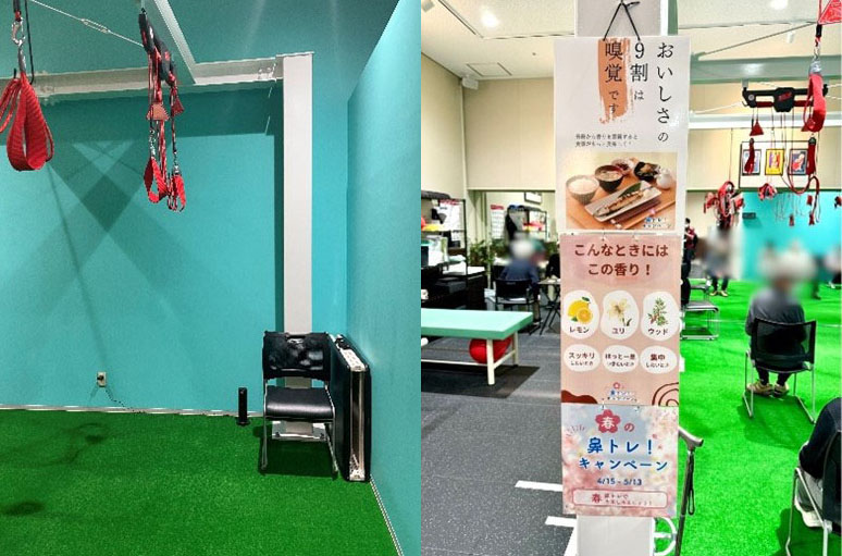 施設内でアロマディフューザーによって心地いい香りを噴霧することで、生活する空間で自然と嗅覚を意識するよう働きかけました。加えて、施設内に香りや嗅覚に関する雑学を記載したポスターを掲示することで、嗅覚への意識付けを促進しました。