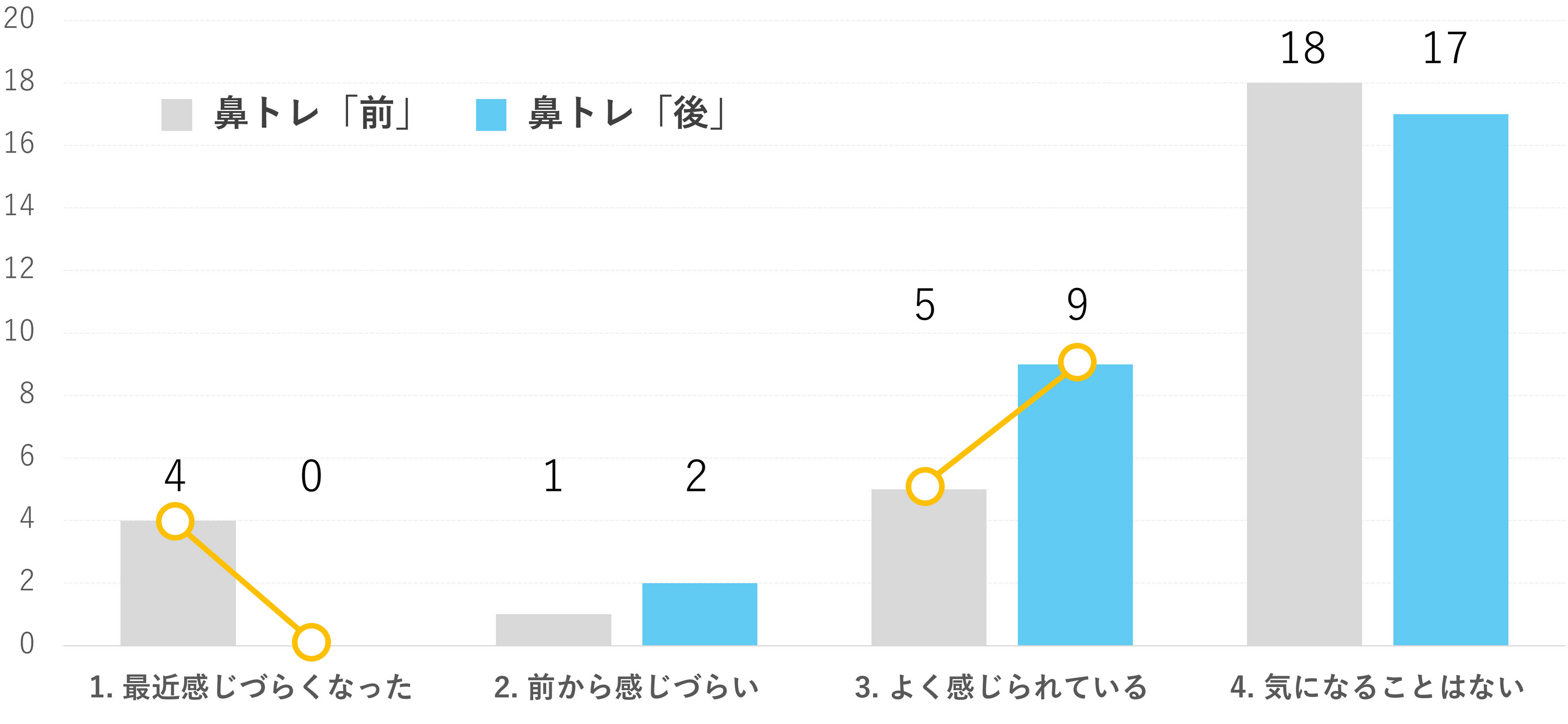 1か月後に「嗅覚に対する意識の変化」に関してアンケートを用いて調査しました。