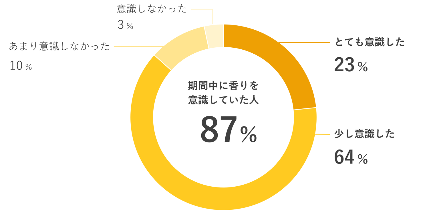 「鼻トレ」を行なっていた期間に香りを意識していた人は約90%であった