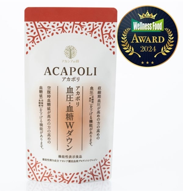 株式会社アカシアの樹(本社 広島廿日市市)が販売する『アカポリ血圧・血糖Wダウン』は一般社団法人ウェルネスフード推進協会主催の第7回ウェルネスフードアワードのサプリメント部門で入賞を果たしました。