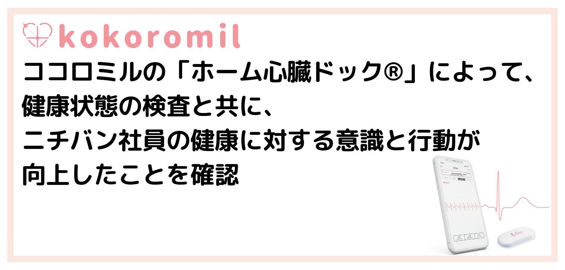 株式会社ココロミル(本社:東京都新宿区、代表取締役社長:林大貴、以下「ココロミル」)は、ニチバン株式会社(本社:東京都文京区、代表取締役社長:高津敏明、以下「ニチバン」)へ、日常生活の中で長時間検査が可能な心電図解析サービス「ホーム心臓ドック®」のサービスを開始しました。