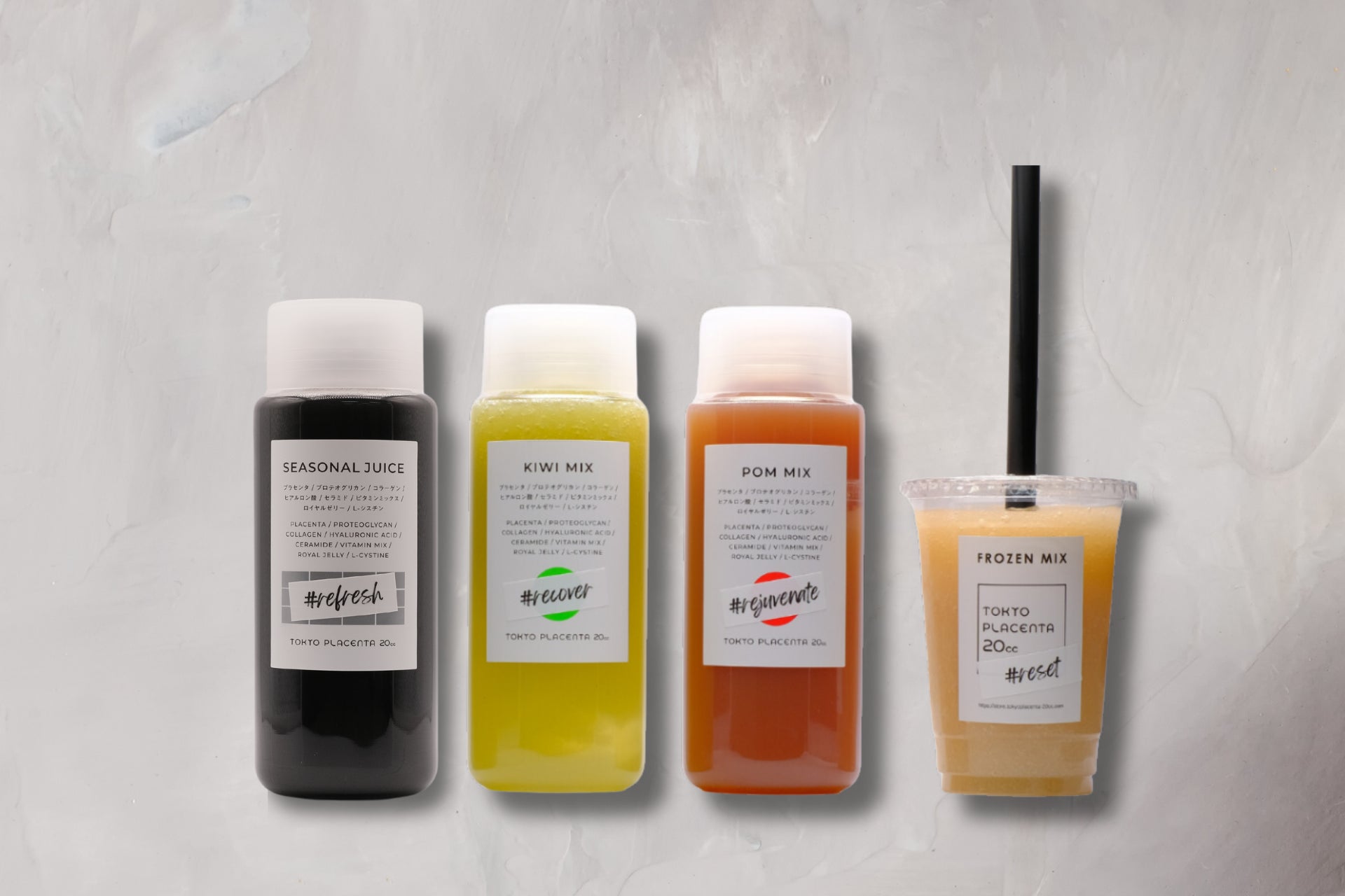 TOKYO PLACENTA 20ccは4周年を記念し、さらなる進化を遂げて看板商品「インテンスジュース」をリニューアルしました。新たなシリーズ名『RE:』には「再び」「もう一度」という意味が含まれており、再生や再スタート、リフレッシュなどを表現しています。若々しさと美しさをケアして、再び輝くことを願ったネーミングです。また、皆様の期待やご要望に応え続けるという意味合いが込められています。それぞれの美容や健康の目的に応じた4種類のジュースで、あなたの美しさと健康をサポートします。忙しい現代女性の悩みに応え、内側から美と健康をサポートするための新しいステップを踏み出します。さらに、今回のリニューアルではより多くの方に手に取っていただけるよう、「お試しショット」もご用意しました。