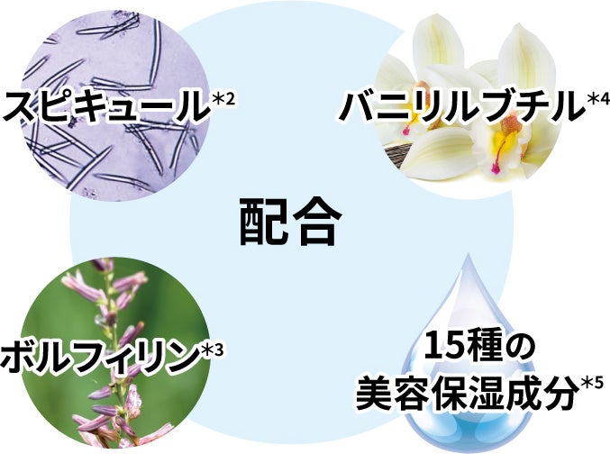 *5 保湿成分:ホホバ種子油、ヒアルロン酸Na、ブドウ種子油、ヤシ油、