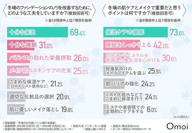 株式会社Omoi(所在地:東京都中央区、代表取締役:横井 秀至)は、30~50代の女性を対象に、「冬場のお化粧ノリ」に関する調査を実施しました。