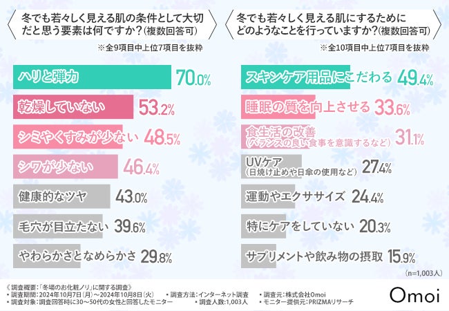 冬は乾燥や冷たい風が肌にダメージを与えやすく、ハリや弾力を保つことが難しいため、多くの方が重要視していると示されました。