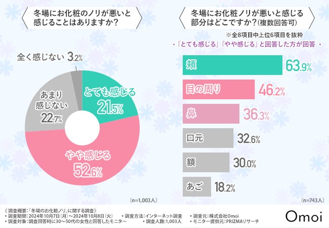 そこで今回、株式会社Omoi(http://omoi.style/index.html)は、30~50代の女性を対象に、「冬場のお化粧ノリ」に関する調査を実施しました。