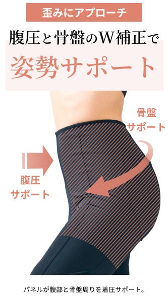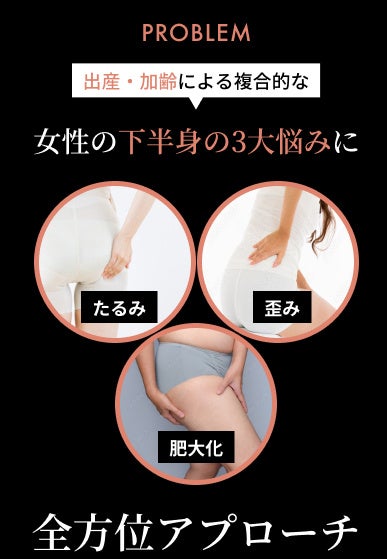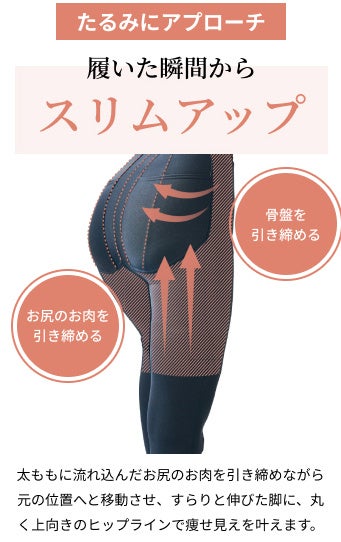 一般的な着圧レギンスの履きにくさを解消し、女性の3大悩み たるみ、歪み、肥大化にアプローチ。