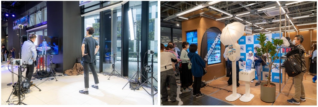 会場では、来場者向けの体験コンテンツも複数展開しました。ソニーの可搬型ボリュメトリックシステムを使用し、その場でキャプチャした自分自身をリアルな姿のまま、仮想空間のバトルステージに登場させることができる体験ブース「Breaking battle – VS Shigekix -」が登場。来場者をブースでキャプチャすることで、仮想空間のフィールドでShigekixとのバトル映像が生成され、まるで実際にShigekixとバトルをしているような体験が実現。貴重かつ、技術のすごさに、ブースからは驚きの声が上がっていました。