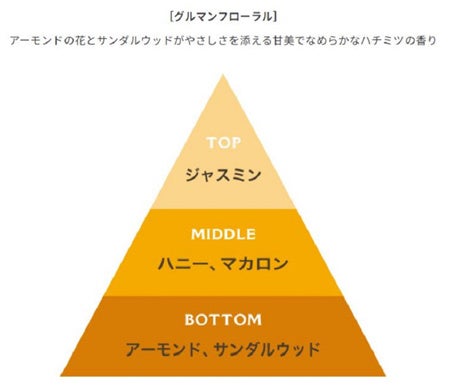 香 り:アーモンドの花とサンダルウッドがやさしさを添える、甘美でなめらかなハチミツの香り