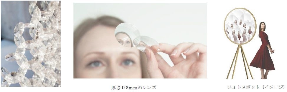 ツリーの素材には、直径5.5㎝、厚さ0.3mm、重さ0.9gの非常に軽量で薄いフレネルレンズを使用しています。レンズが組み合わさることで、一つの風景がまるで万華鏡のように複製され、見る角度によって見え方が変わり、これまでに見たことのない美しい風景を創り出します。