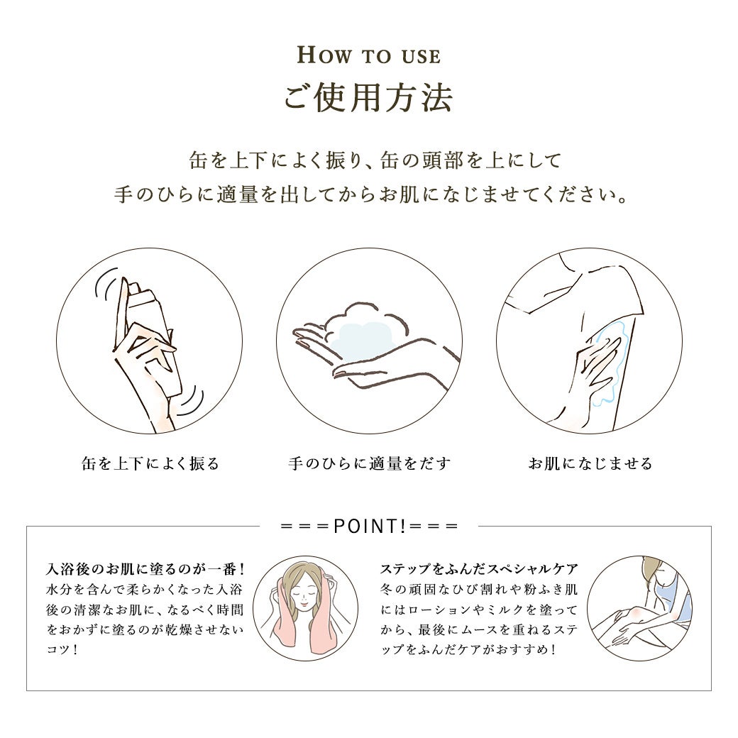乾燥してキメの乱れたカサカサ肌にもふんわりムースが、やさしくタッチ。摩擦レスな塗り心地で、もっちり柔らかなシルキー肌に導きます。空気の乾燥やニットの繊維などで、カサついたりゆらぎやすい乾燥肌の方にもおすすめです。
