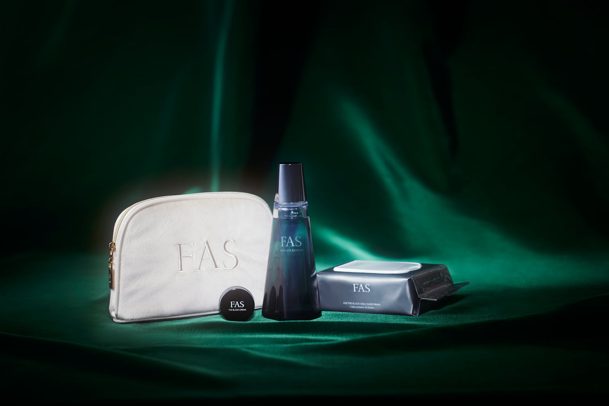 FAS ザ ブラック デイリー シートマスク 10枚入り FAS ザ ブラック エッセンス 120mL FAS ザ ブラック クリーム(販売名:Fクリーム 医薬部外品) 5g FAS ホリデーポーチ2024 |