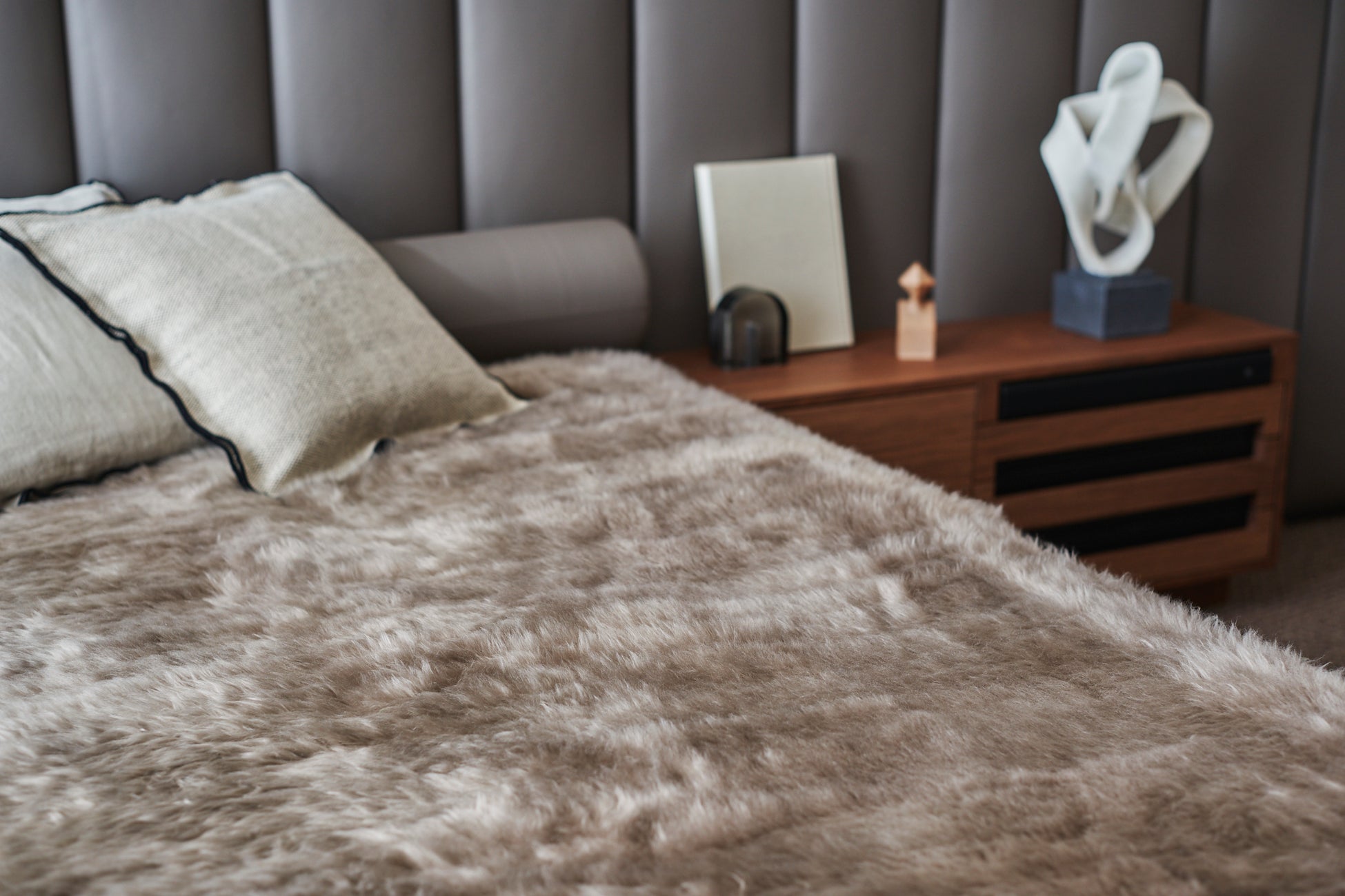 1 平方センチメートルにつき 3000~3300 本の羊毛が生えているムートン。カールした繊維が複雑に絡み合うことで、空気の層が形成され、保温効果を高めています。寝始めのヒヤッとした感覚がなく、寒い時期でも暖かいのが特長です。