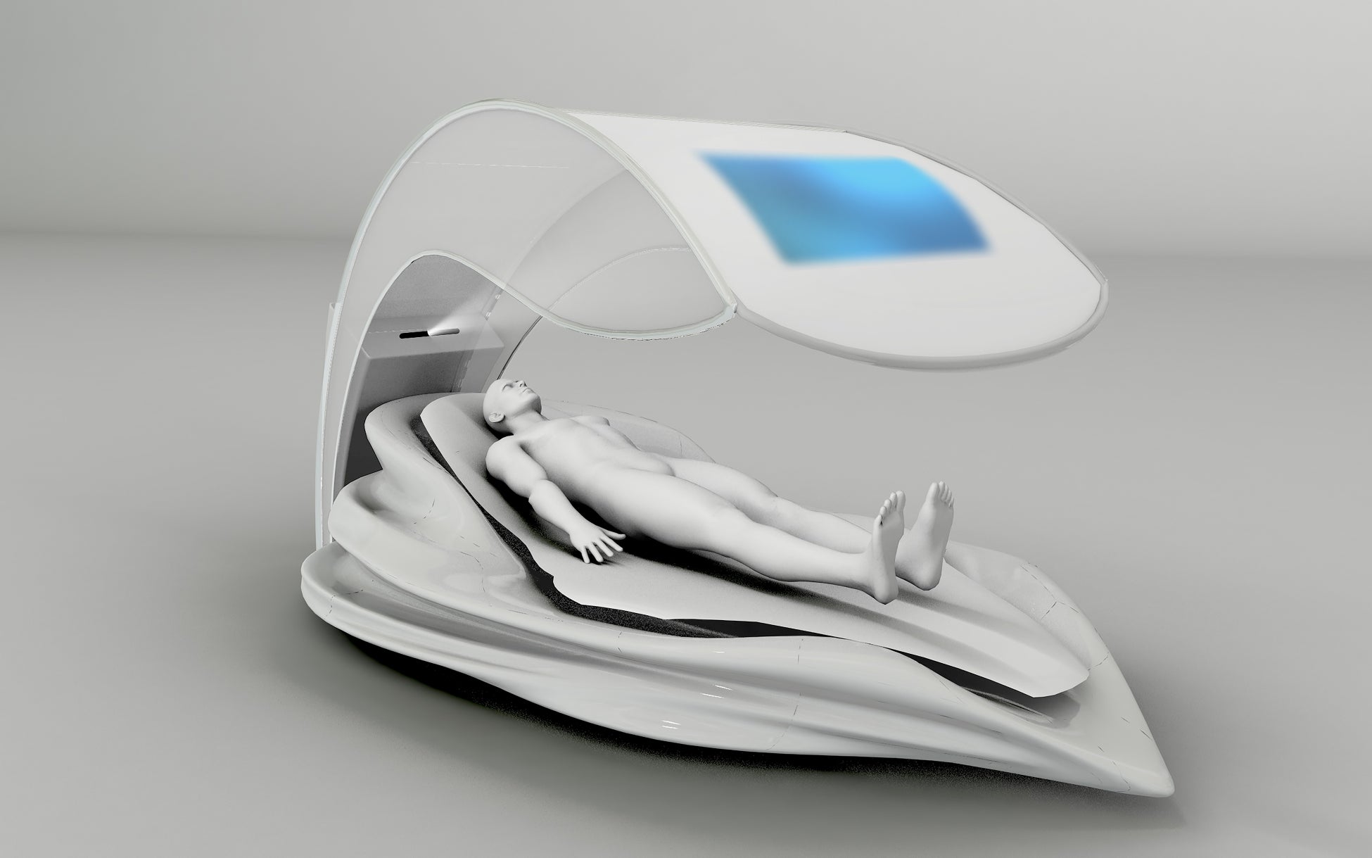 眠りのメカニズムが解明され、一人ひとりの身体 の状態に合わせてベッドや空間全体が呼応し、最適な睡眠に誘われる未来を提案。