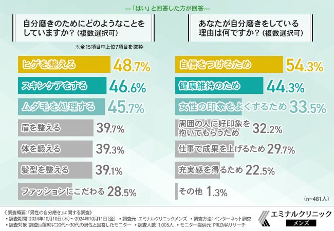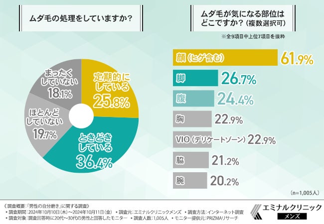 そこで今回、メンズ専用脱毛クリニック・エミナルクリニックメンズは、20代~30代の男性を対象に、「男性の自分磨き」に関する調査を実施しました。