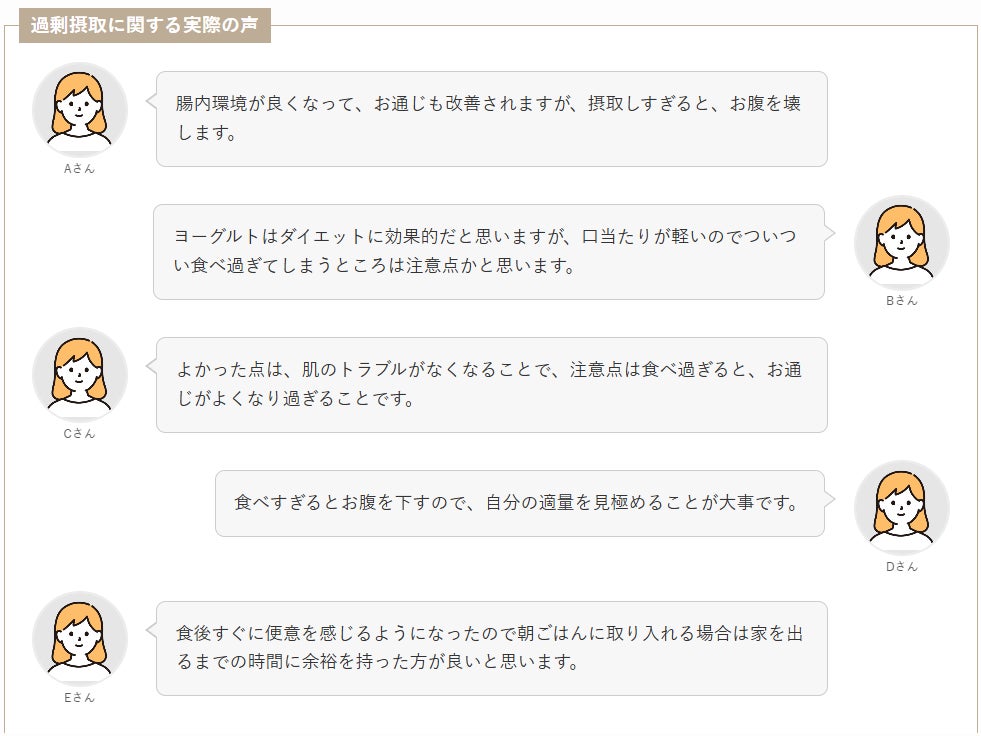 実際にヨーグルトダイエットを行った方の回答にも、「摂取しすぎると、お腹を壊す」「食べ過ぎると、お通じがよくなり過ぎる」などの声がありました。