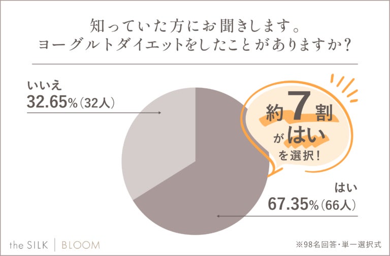 株式会社HYV(本社:東京都目黒区、代表取締役:茅野 航平)が運営する「the SILK BLOOM」では、「ヨーグルトダイエット」に関するアンケート調査を実施いたしました。