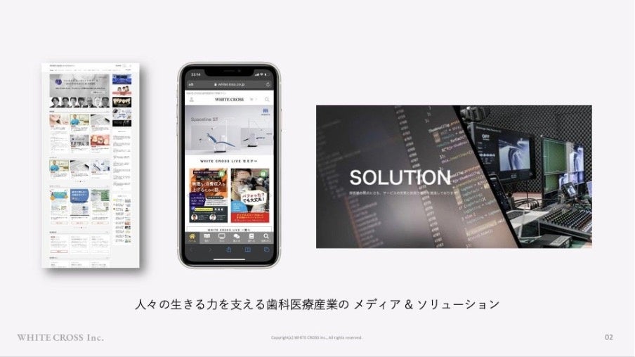 「歯科医療の社会的価値を高める。大樹となり、社員とその家族の幸福を追求する。」をパーパスとし、歯科医療専門職に向けたメディアプラットフォームを運営しているヘルステックカンパニーです。