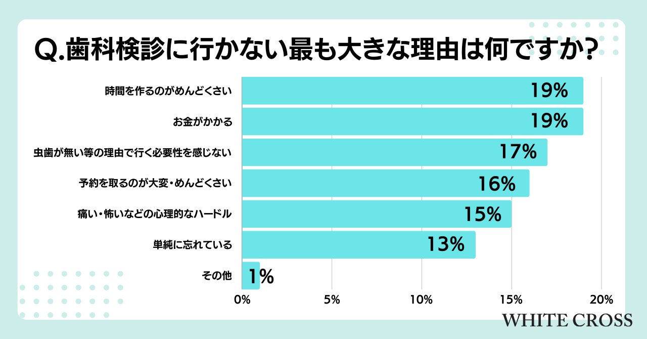 歯科検診に行かない理由、1位:時間を作るのがめんどくさい、お金がかかる