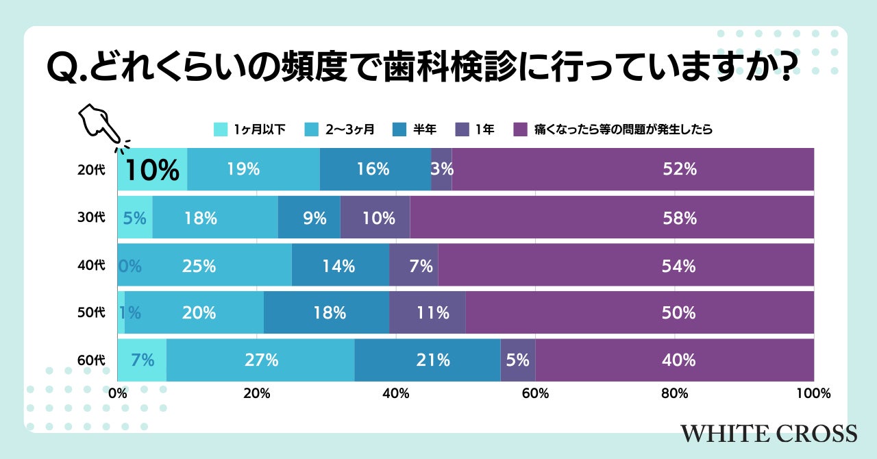 最も頻繁に歯科検診に行っているのは20代!働き盛りの30代〜50代では検診頻度が下がる