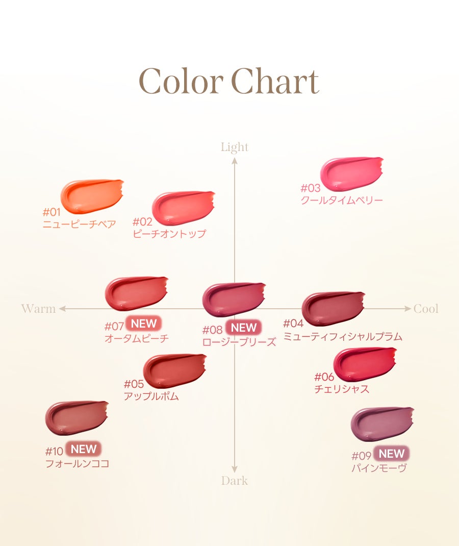 ミルクタッチのグロウティントに、落ち着いたムードのこなれカラー4色が登場します。
