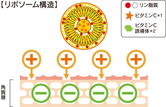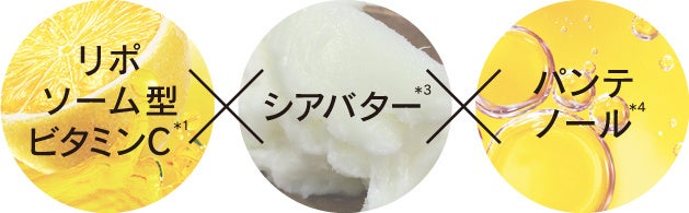 ビタミンC*¹ を肌へなじみやすくするため、肌の構成成分と同じリン脂質からなるリポソーム構造を採用。浸透力にこだわったリポソーム型ビタミンC*¹ に加え、シアバター*³、パンテノール*⁴のシナジーでうるおいを与えます。