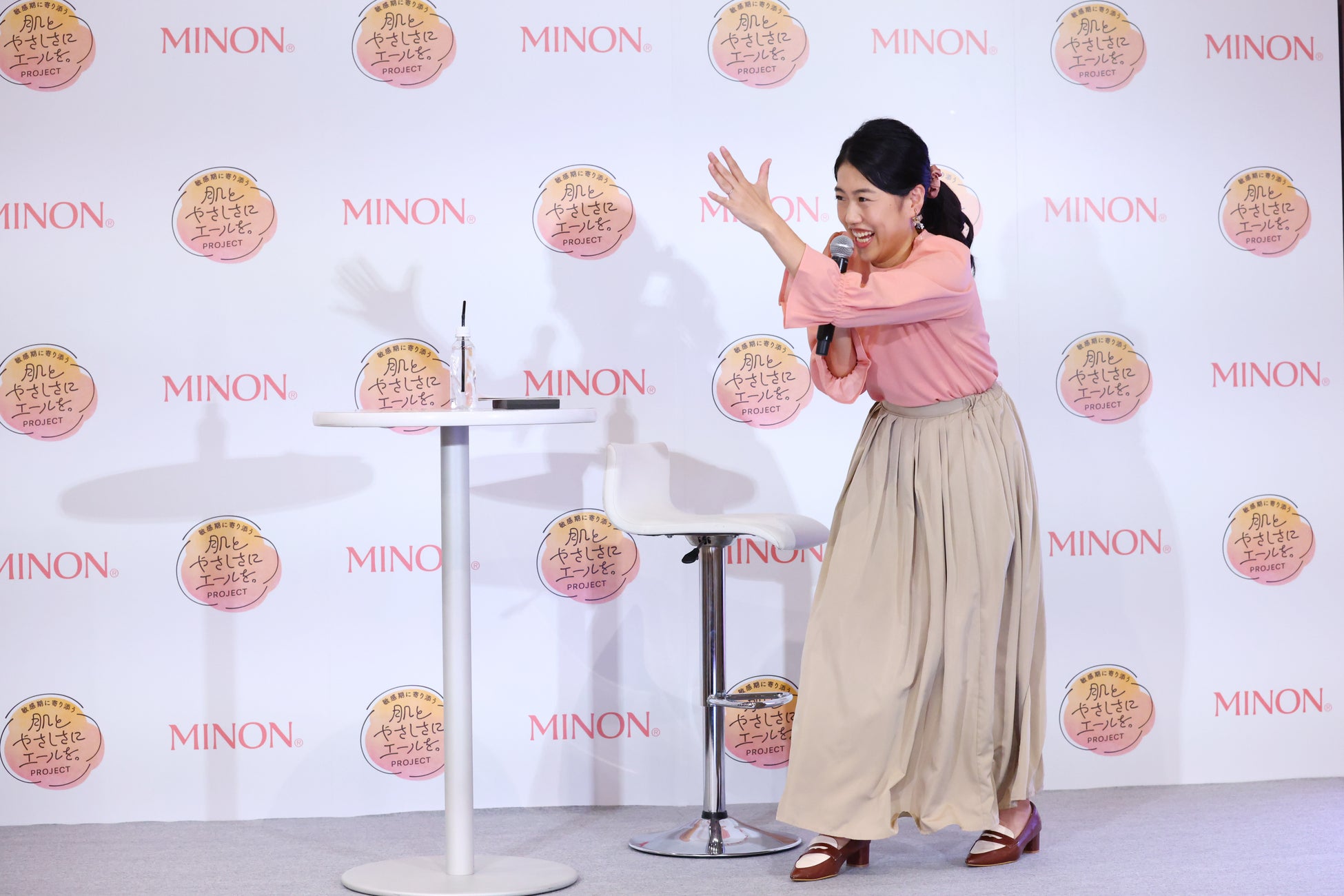 イベントの最後に、横澤さんは「ものまねから読み聞かせまで、お付き合いいただきとても楽しかったです。ミノンさんは心のお守りとして、これからも支えていただけたらなと思います。お昼から夜寝かしつけるまで、皆さん今日も一日頑張りましょうね!」と会場にお越しのママパパたちにエールを送り、笑顔でイベントを締めくくりました。