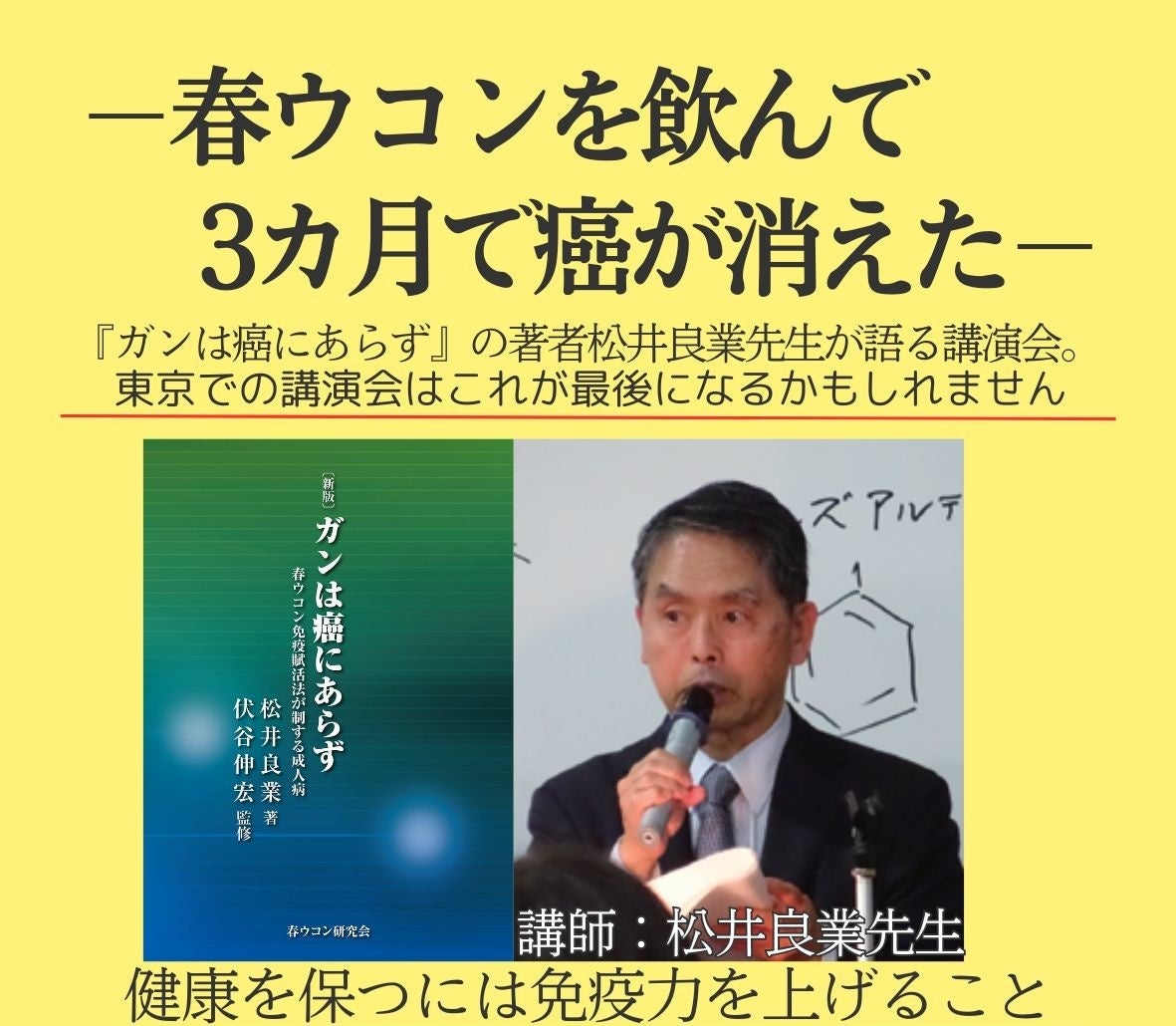 「春ウコンを飲んで3ヶ月で癌が消えた」東京での講演会は、これが最後になるかもしれません。