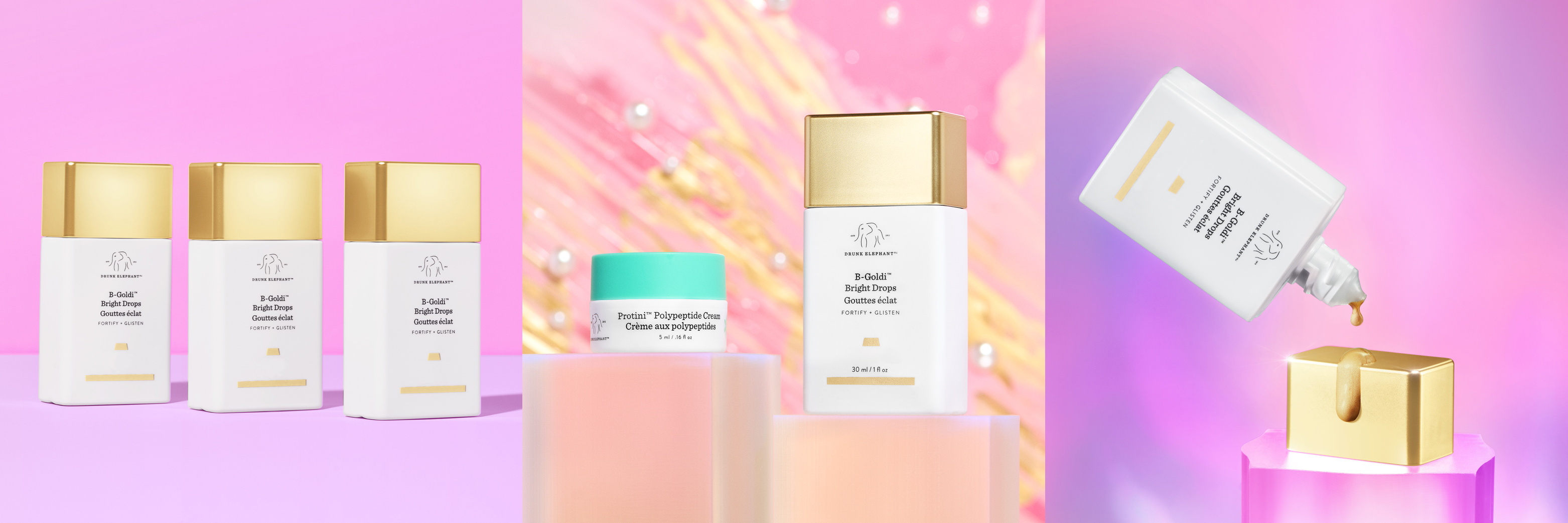 昨年の発売時よりSNSでも話題となっている、ブランド大人気のカラーセラム「ビーゴールディ ブライト ドロップス」。本製品は、繊細なゴールドパールを配合し、化粧下地やハイライターとして自然なツヤ肌を演出するだけでなく、厳しい乾燥に悩みがちな秋冬のお肌を、こだわりの美容成分でスキンケアしてくれるおすすめのアイテムです。パーティーシーンも増え、乾燥対策もおしゃれも忘れたくないこれからのホリデーシーズン。そんな時期のツヤ肌づくり・多幸感メイクにぴったりなドランク エレファントの「ビーゴールディ ブライト ドロップス」を使って、自分だけの輝き肌を手に入れてみては。