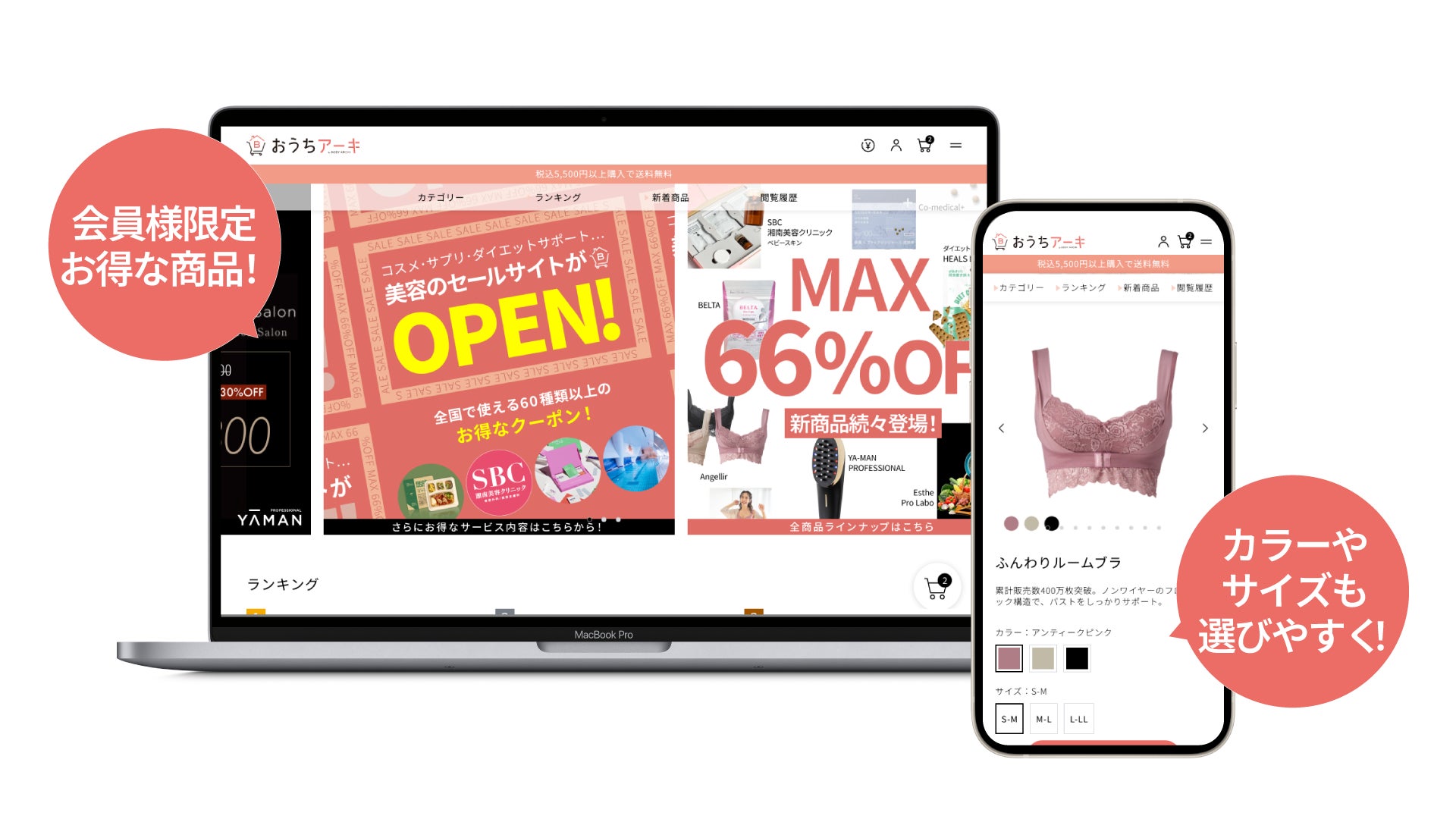 また、オンラインショップの利用だけでなく、全国500以上の施設でご利用いただける会員優待サービス「BeautyPrime」も利用可能。高級ホテルのスパが無料で利用できるほか、全国に拠点のあるSBC湘南美容クリニックの様々なサービスが毎回50%以上割引など他にはない体験型優待をお楽しみいただけます。