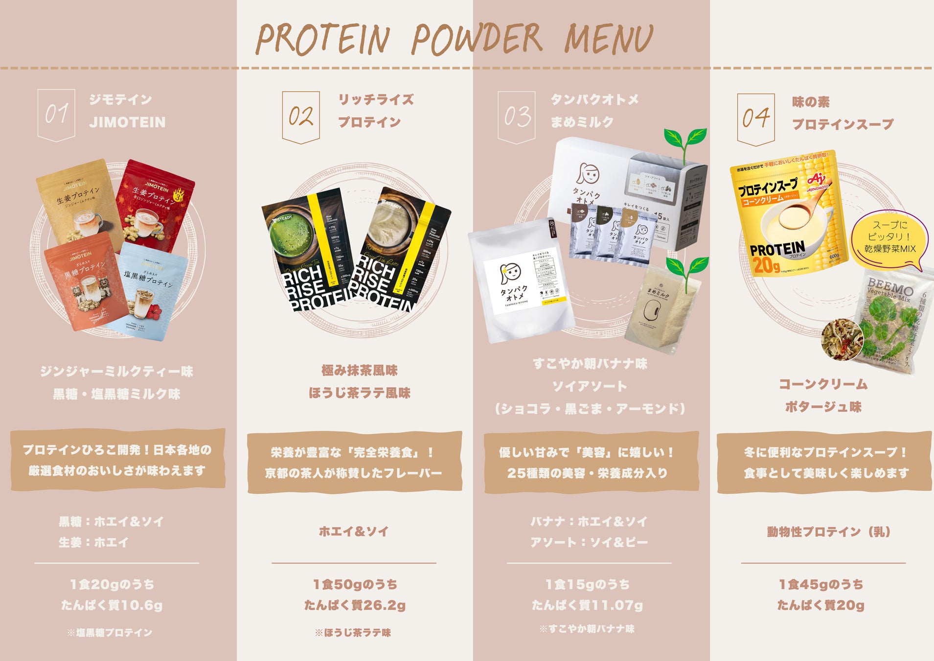 おいしくてキレイづくりのベースとなるプロテインの世界をお楽しみください。