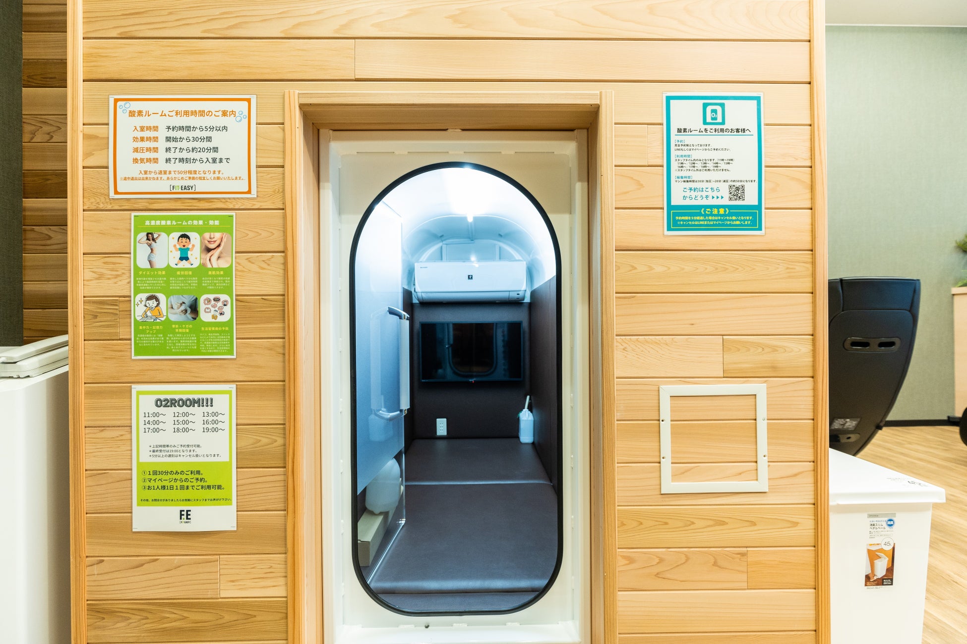高濃度酸素ルームでは高濃度酸素が細胞レベルで効率的に働き、新陳代謝の向上や疲労回復の促進、身体の機能向上や回復力の強化が期待できます。フィットネス後のアフターケアとして、ストレス軽減やリラクゼーション効果によるメンタルヘルスの向上としてご利用いただけます。