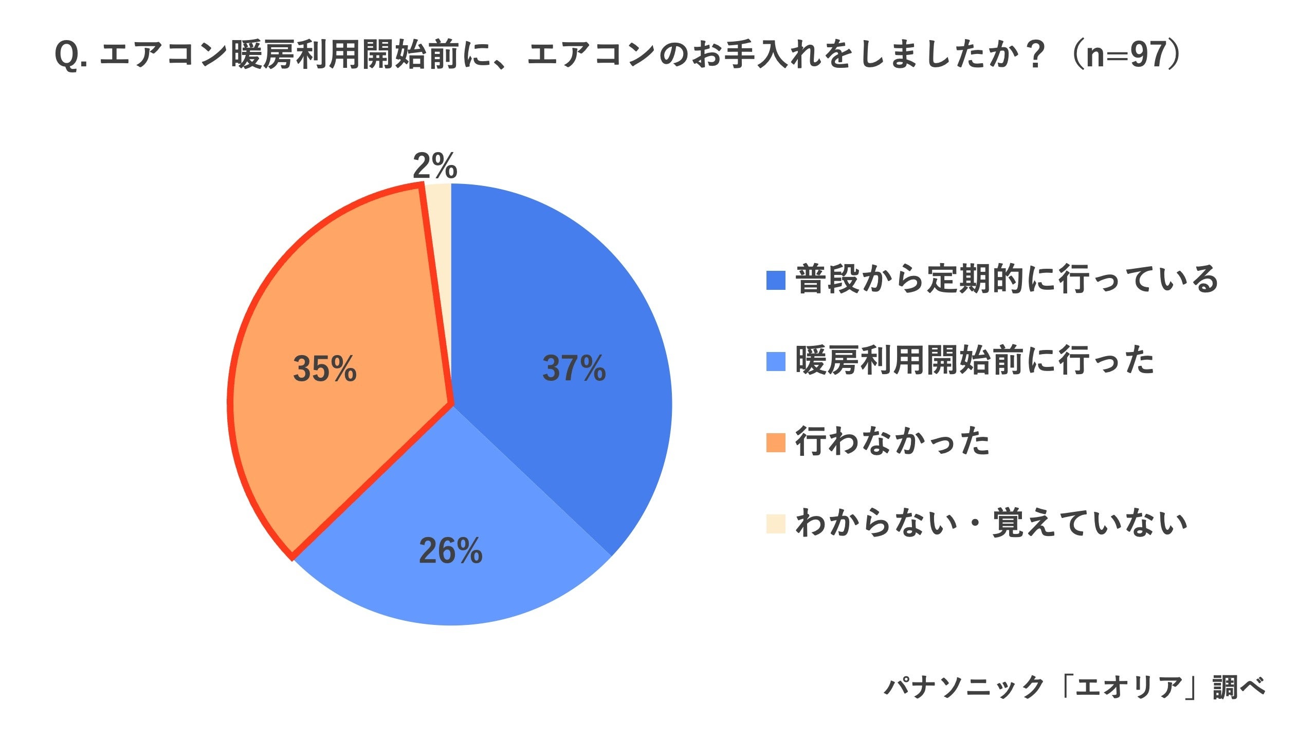 ・エアコン暖房利用開始前に、「エアコンのお手入れをしなかった」35%