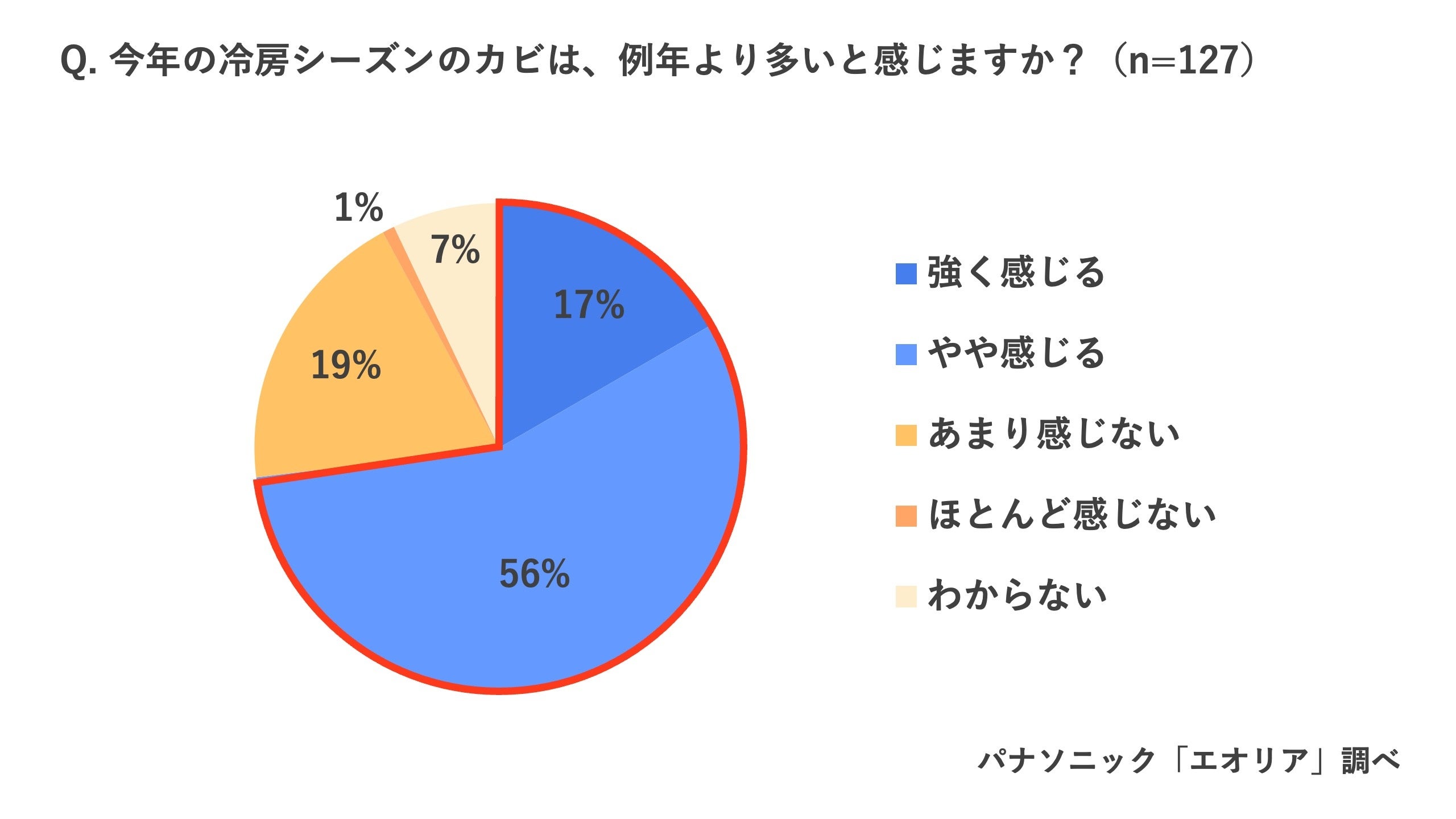 ・「今年の冷房シーズンのカビは、例年より多いと感じる」73%